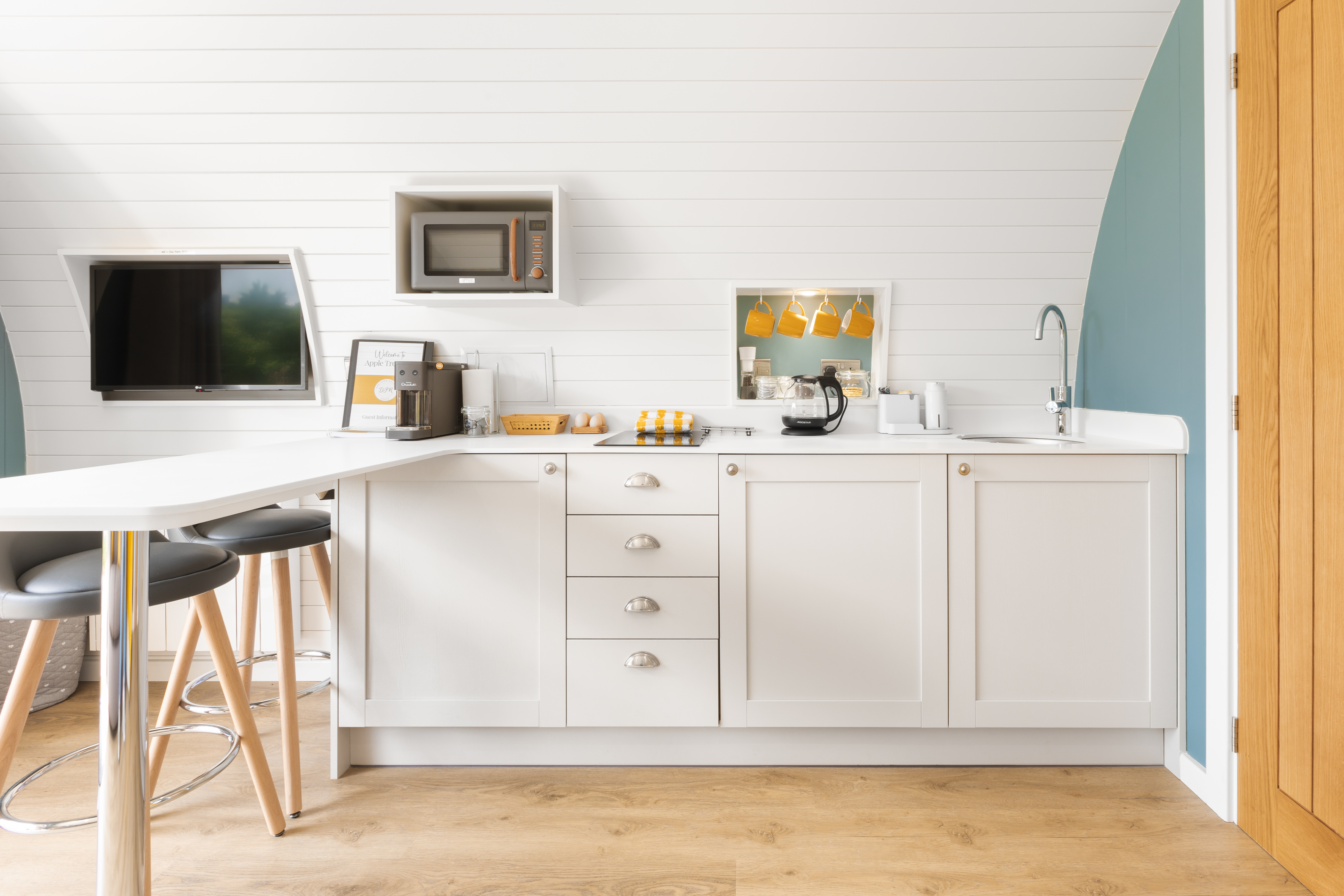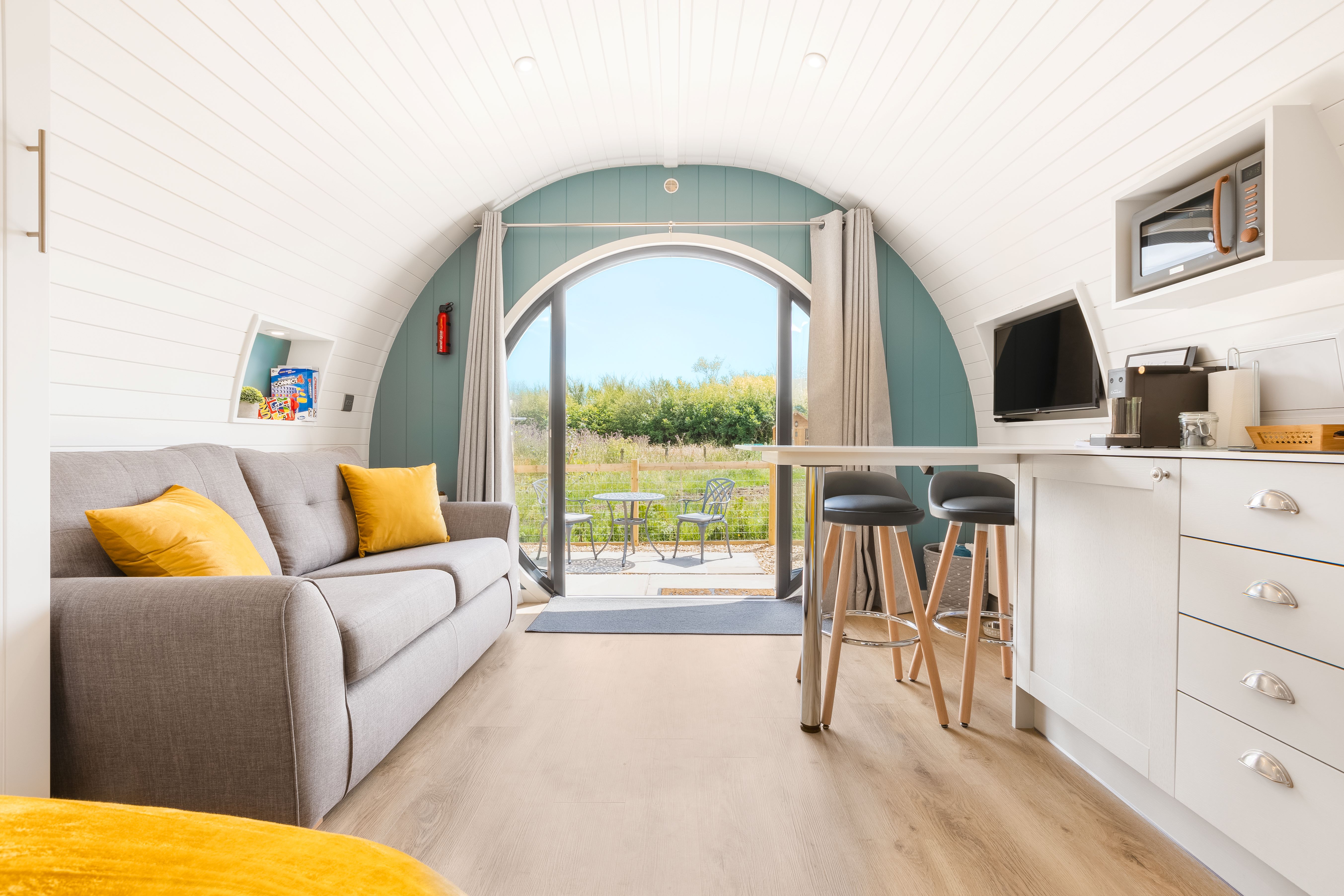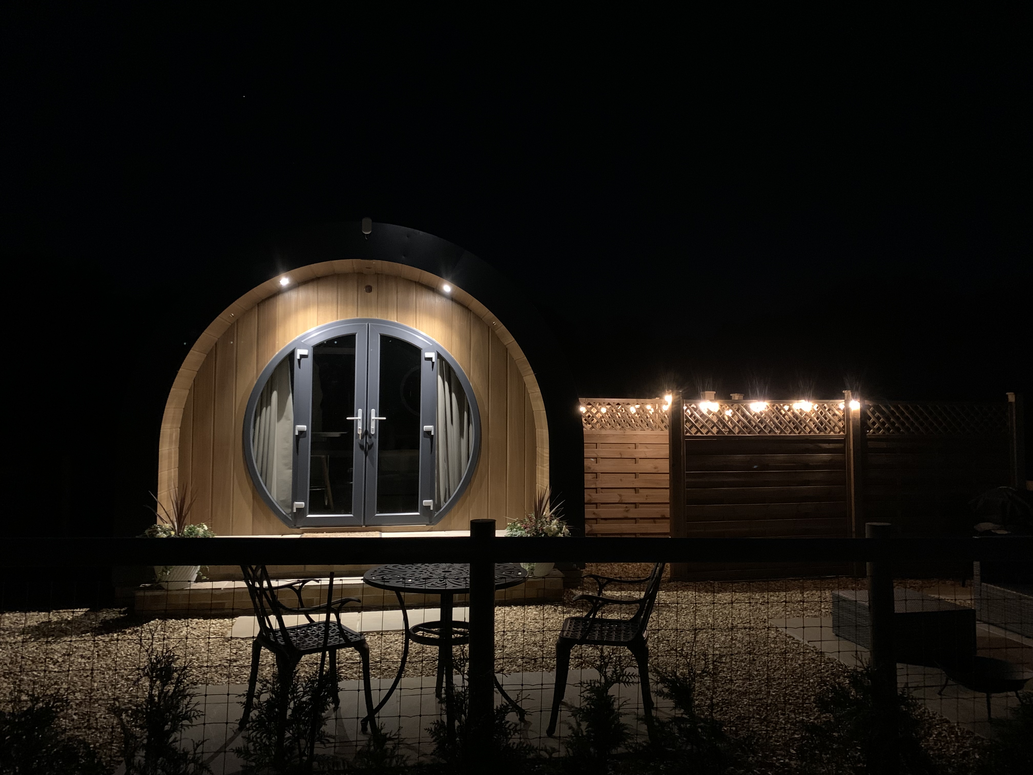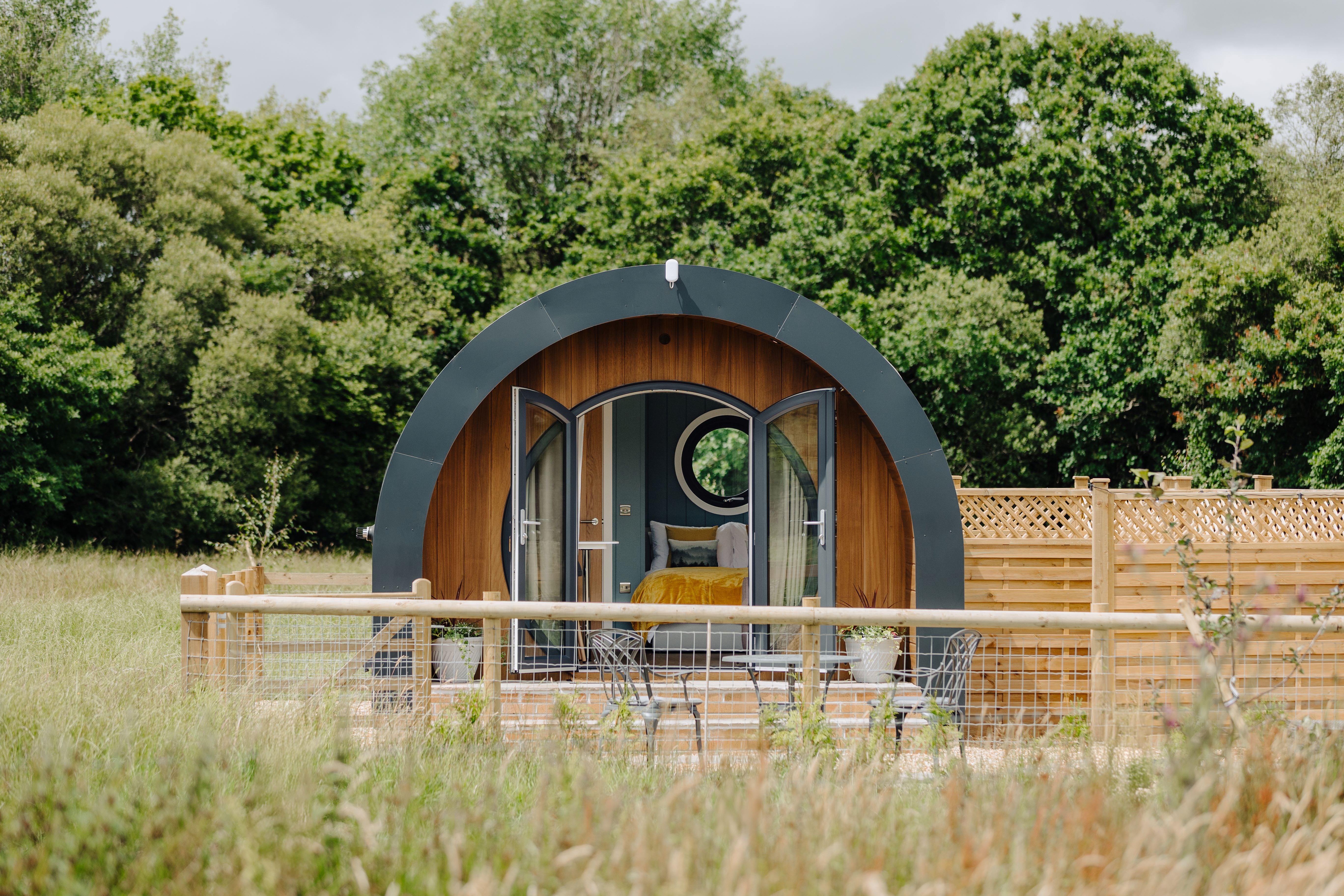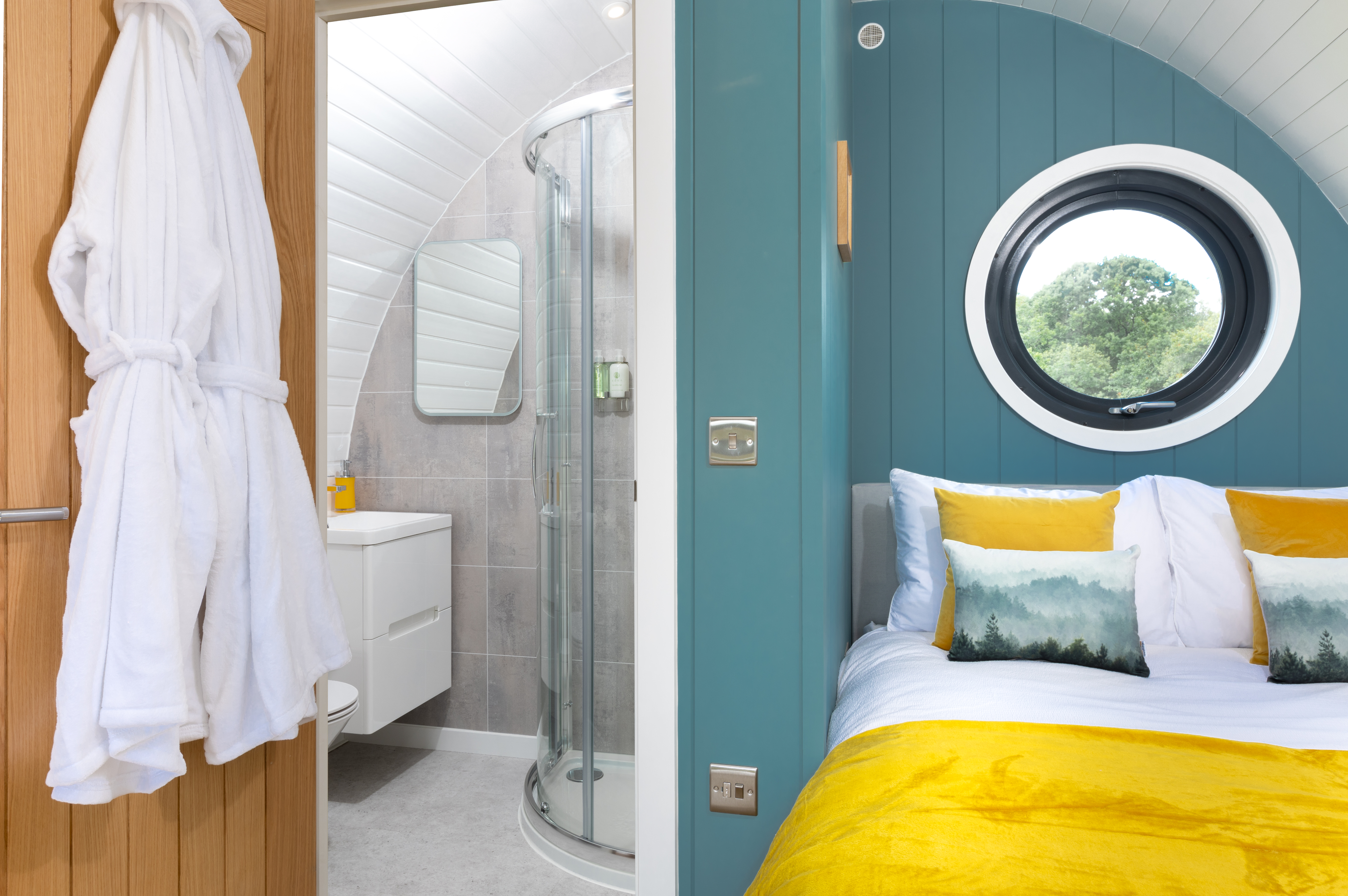 Each luxury pod measures 6 x 4 metres, is manufactured in Wales to our own specification and set in 2 acres of woodland meadows.