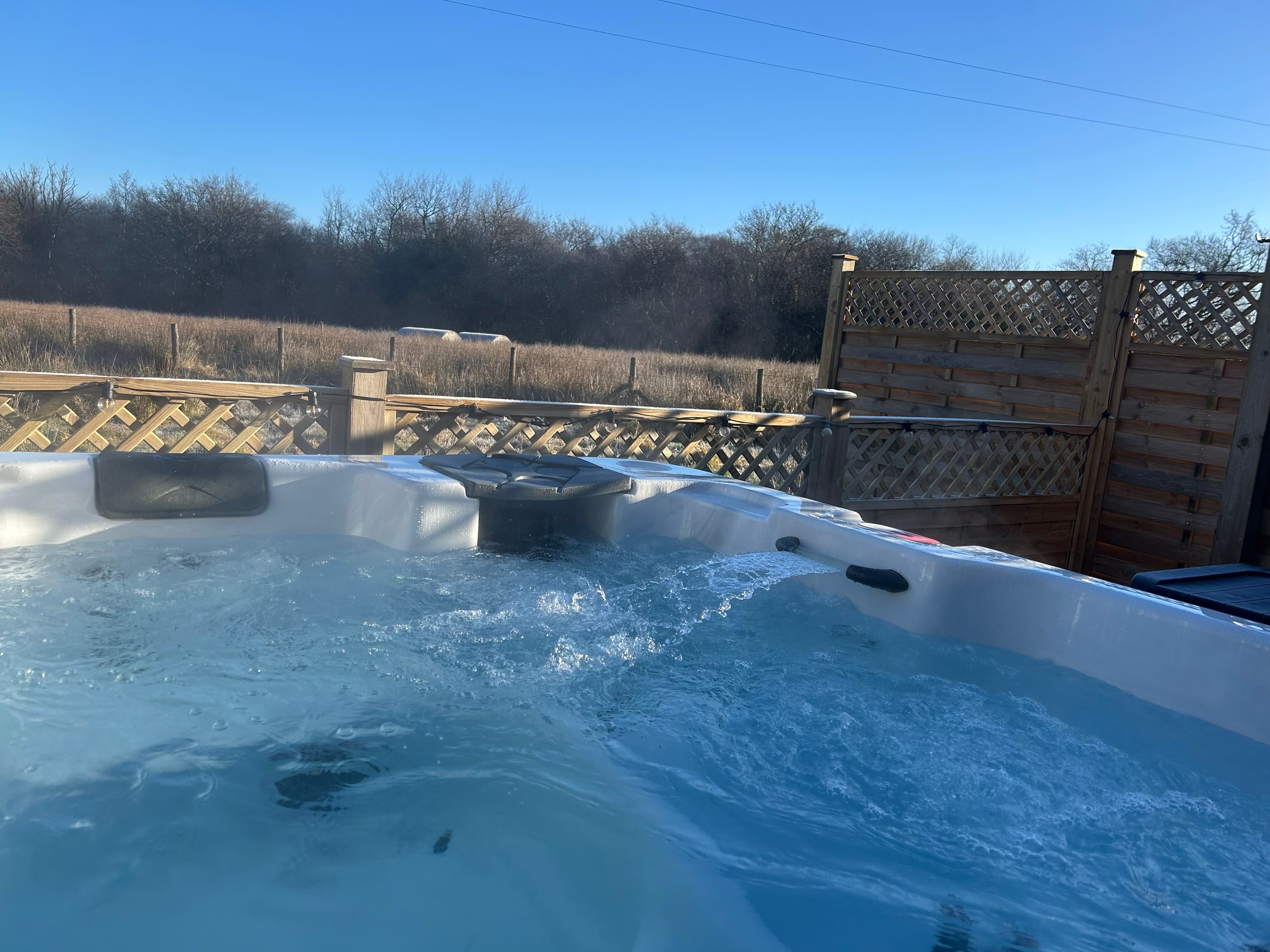 Outside there is a Patio with seating, gas BBQ, log fire pit and totally secluded electric HOT TUB.